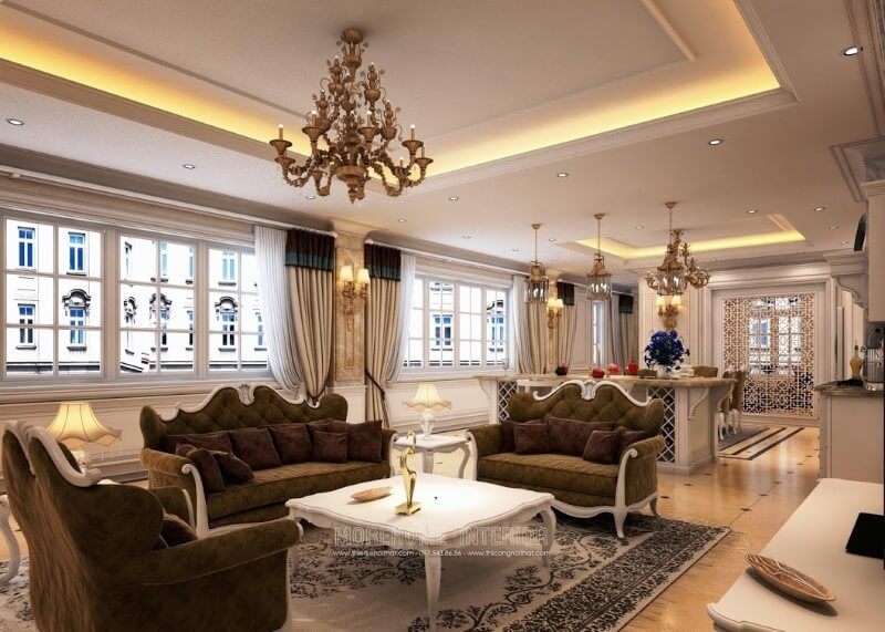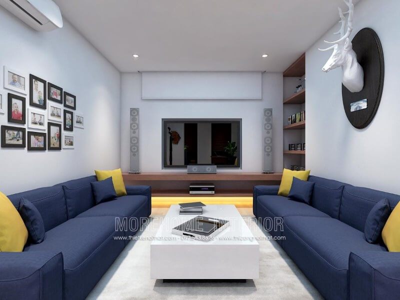 Bàn trà được đặt ở vị trí trung tâm của phòng khách giúp không gian thêm nổi bật và ấn tượng hơn.