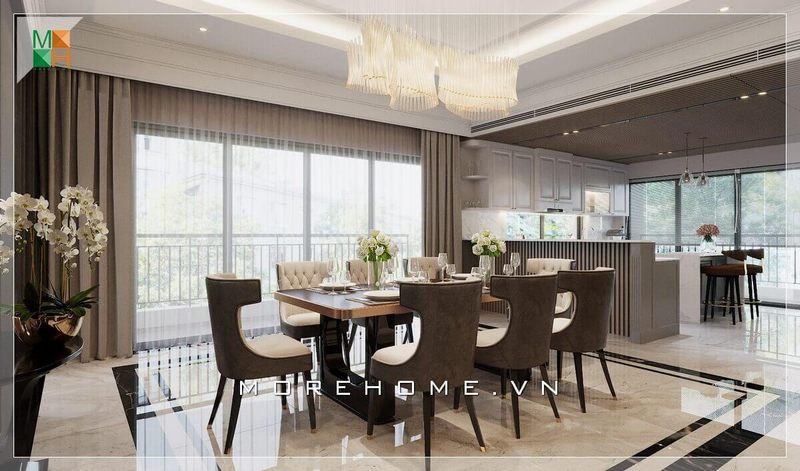 Mẫu thiết kế bàn ăn 8 ghế sang trọng cho không gian phòng ăn thêm tiện nghi