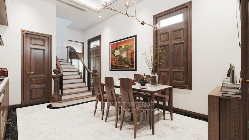 Phòng khách sử dụng cửa gỗ An Cường Laminate vân gỗ tông trầm MH04