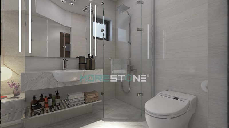 Mẫu phòng tắm hiện đại với lavabo ốp đá nhân tạo vân mây cao cấp