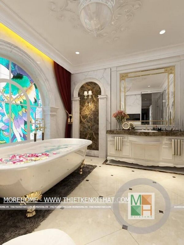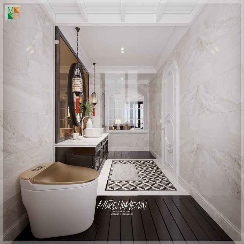 Được phân bố hiệu quả lavabo và bàn cầu phù hợp với không gian phòng tắm của gia chủ để không bị quá trật hẹp tạo cảm giác khó chịu khi sử dụng