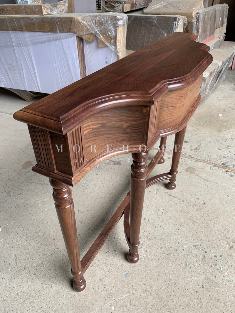 Màu nâu trầm ấm của bàn console với những đường cong đẹp mỹ miều từ gỗ tự nhiên óc chó sẽ tôn lên nét đẹp sang trọng cho góc phòng khách của bạn.