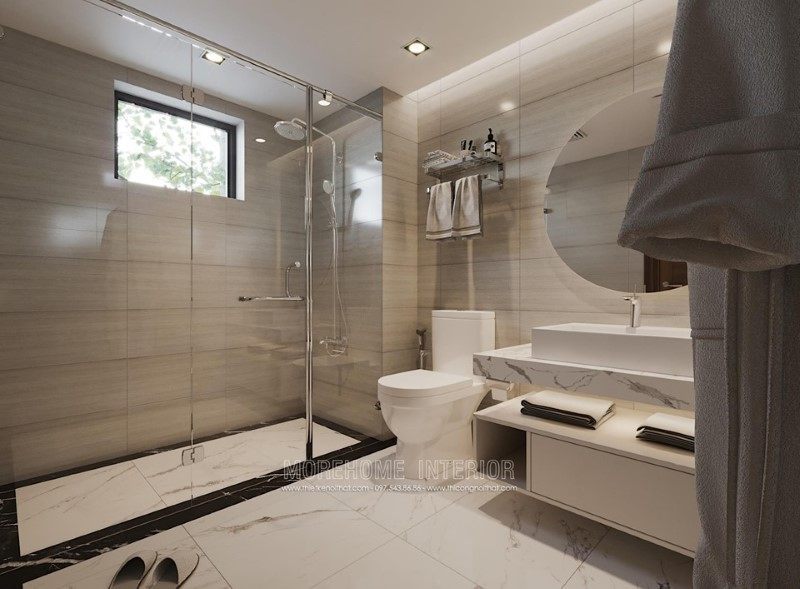 Kệ tủ lavabo treo tường gỗ công nghiệp màu trắng của nội thất sẽ giúp không gian phòng tắm trở nên đẹp mắt hơn. Nó cũng giúp sắp xếp đồ dùng gọn gàng và ngăn nắp thẩm mỹ, tạo nên sự cao cả cho phòng tắm.