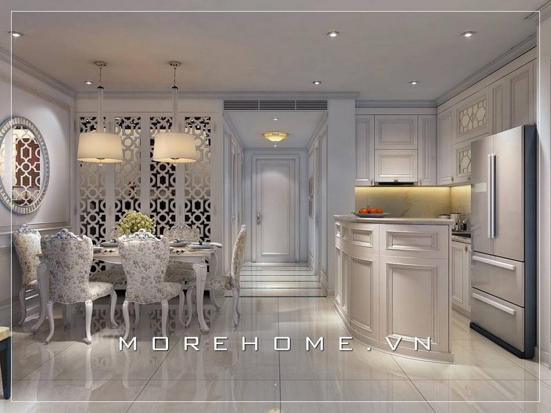 Những gam màu nhẹ nhàng như trắng, kem hoặc pastel không chỉ giúp không gian trở nên rộng rãi hơn mà còn mang lại cảm giác sạch sẽ và hiện đại. Bên cạnh đó, bạn có thể thêm những điểm nhấn màu sắc thông qua các phụ kiện như khăn trải bàn, chén bát hay thậm chí là cây xanh, tạo sự sống động cho căn bếp.
