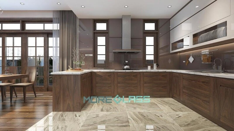 Mẫu kính bếp màu nâu đất MG-017 mộc mạc tạo cảm giác ấm cúng, gần gũi cho gian bếp.